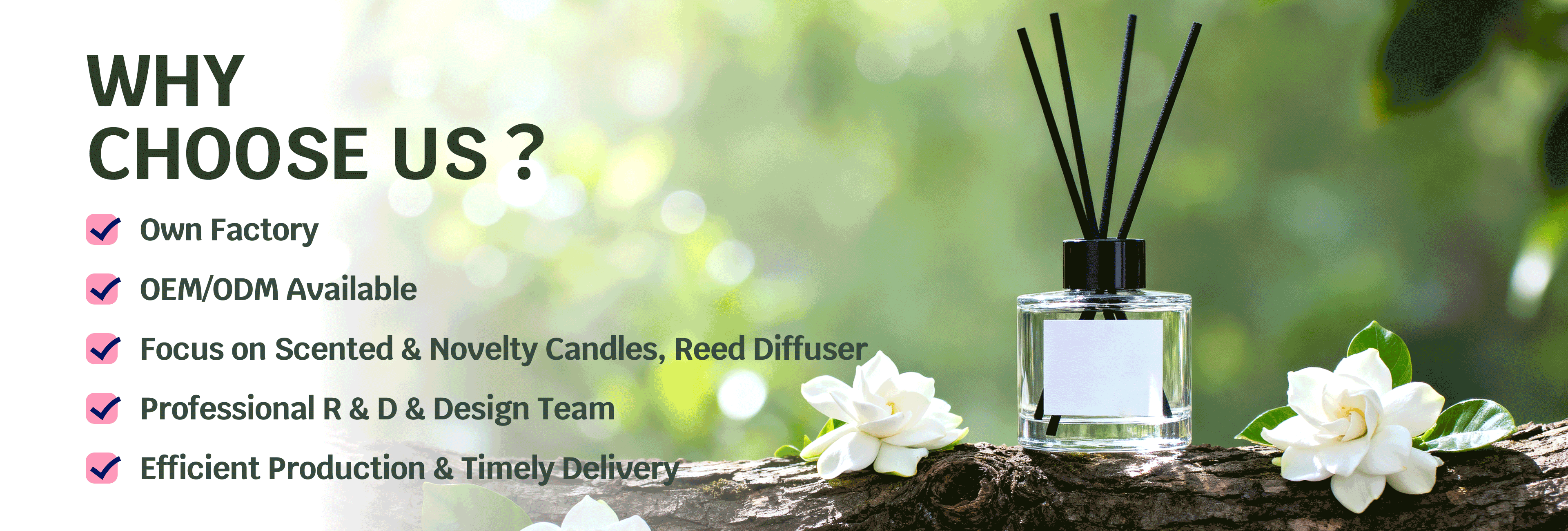 Innovative & Flexible: Trend-led new scents/designs; custom options available.